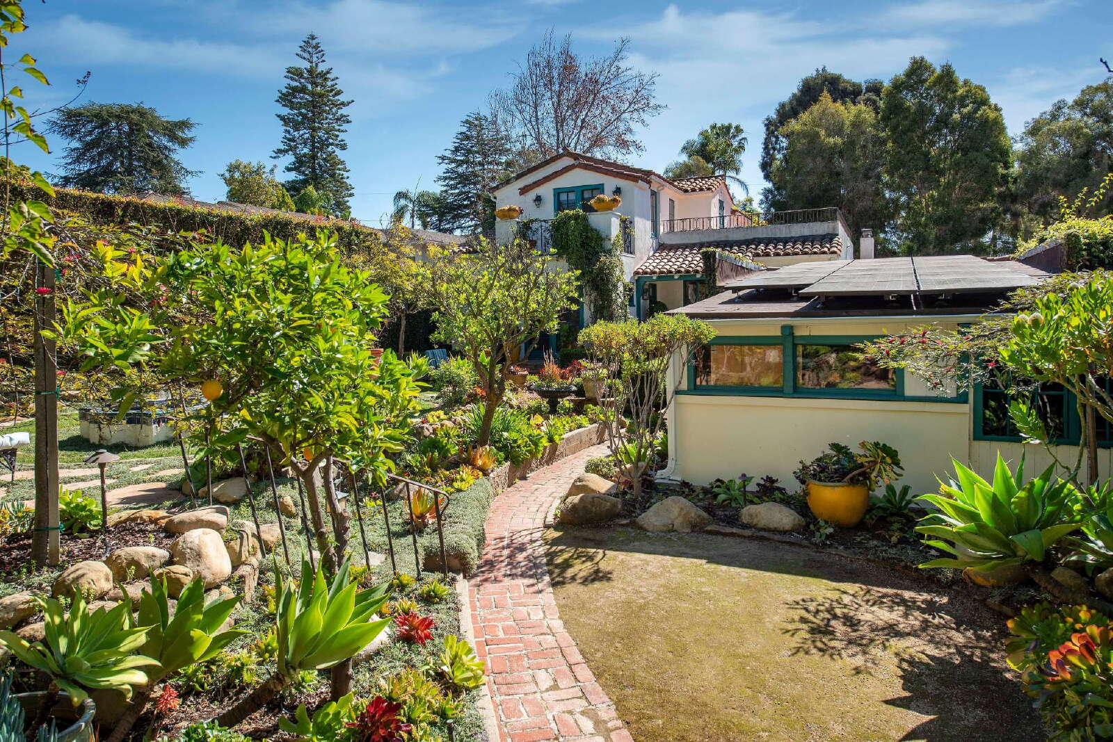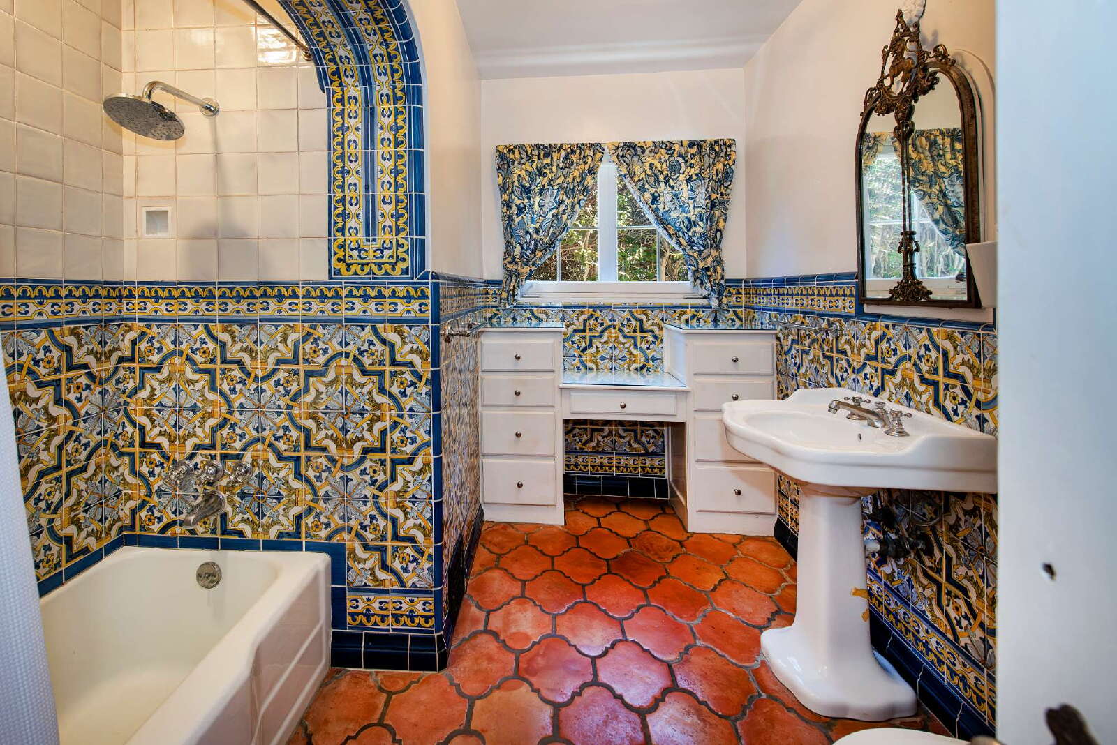 - Two full bathrooms with original Spanish tilework